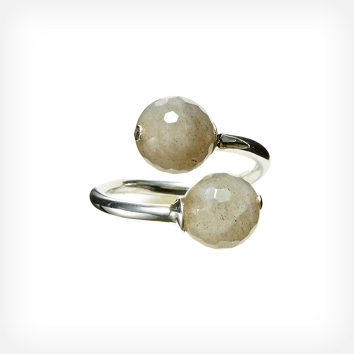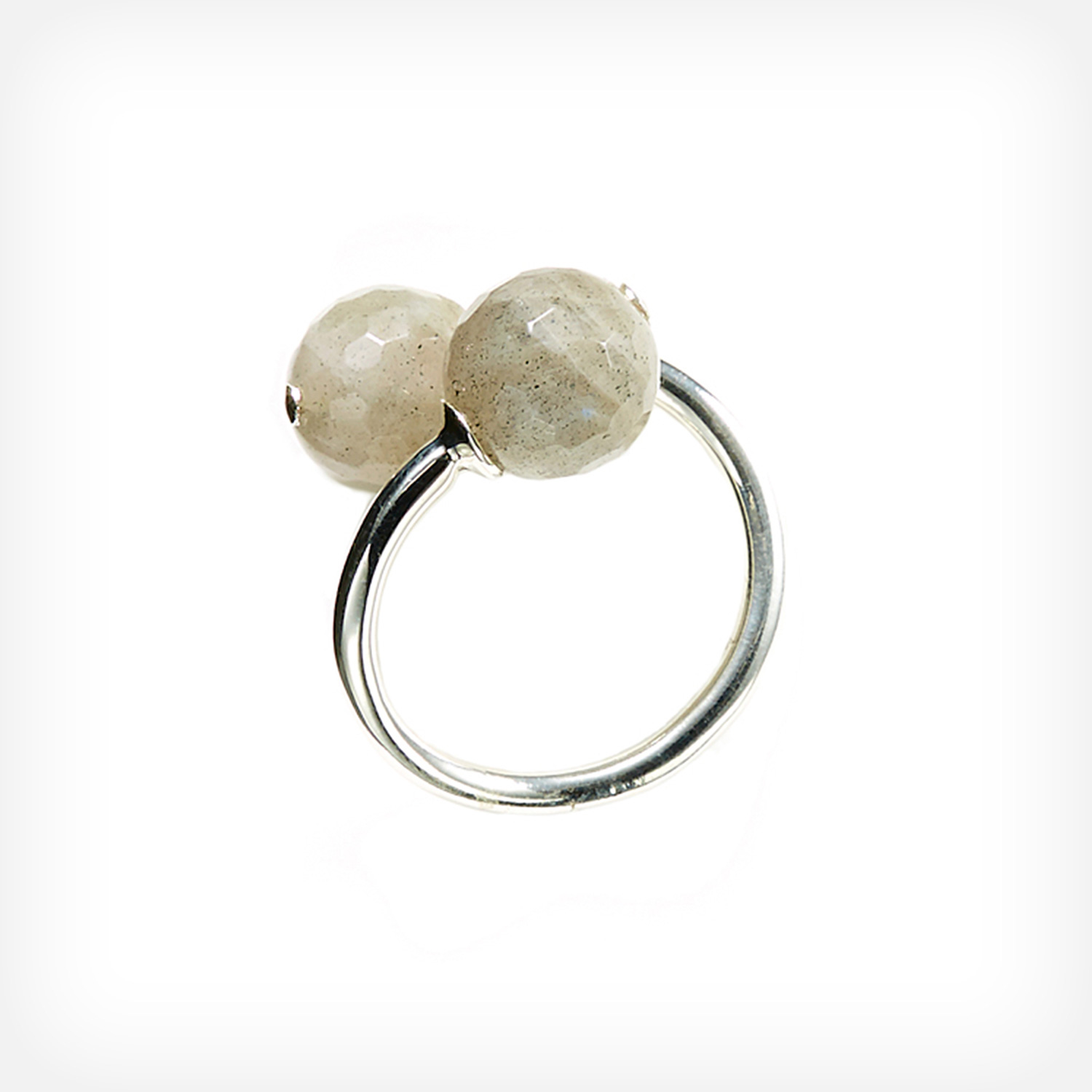 Faceted natural Labradorite stones and polished Sterling silver ring.