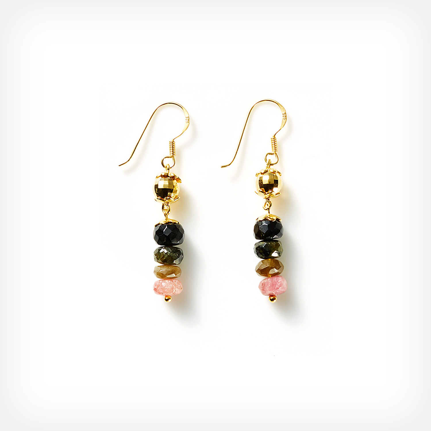 Natural Tourmaline stones with gold-plated beading and gold-plated Sterling silver allergy free hooks.